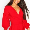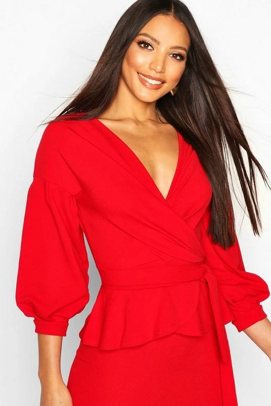 BOOHOO Off The Shoulder Wrap Peplum Midi Dress
