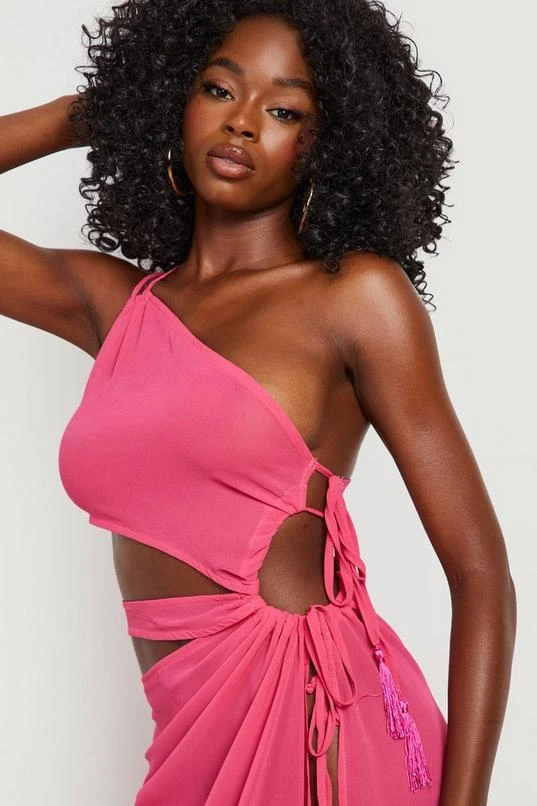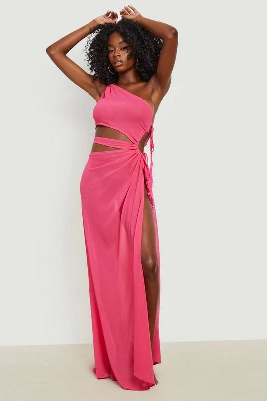 BOOHOO One Shoulder Cut Out Maxi Beach Dress