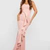 BOOHOO One Shoulder Frill Maxi Dress