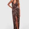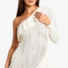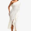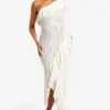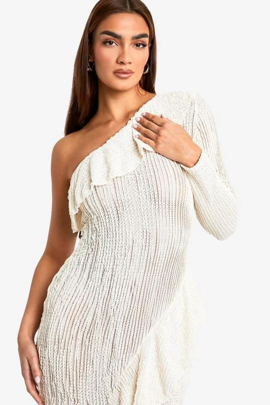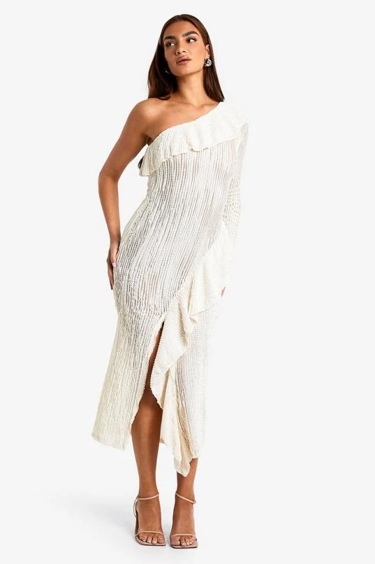 BOOHOO One Shoulder Ruffle Sheer Knitted Midaxi Dress