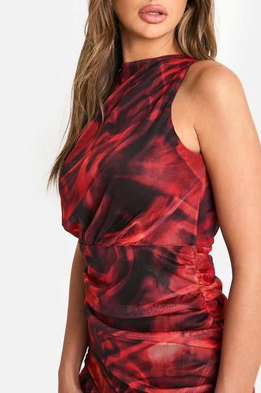 BOOHOO Open Back Ruffle Hem Printed Mesh Mini Dress