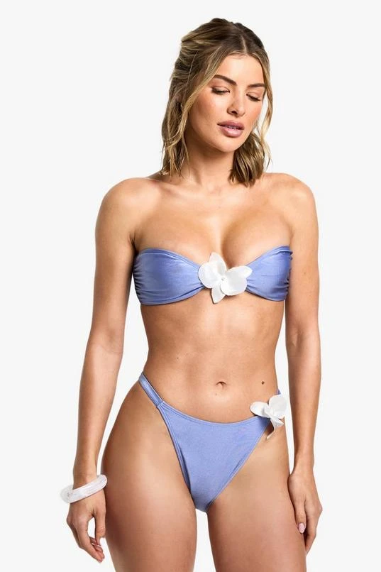 BOOHOO Orchid Flower Trim Bandeau Bikini Top & Tanga Bikini Bottoms Set