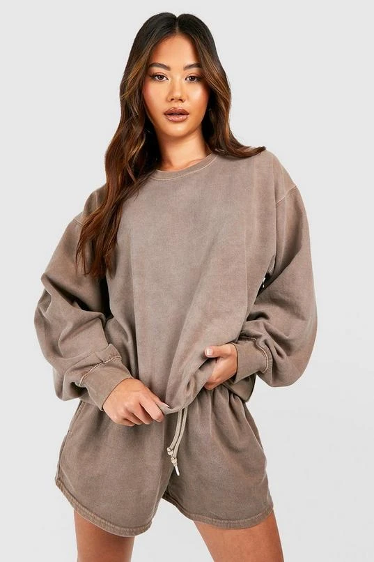 BOOHOO Overdyed Sweatshirt Short Tracksuit