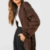 Inspired by military flight jackets, this bomber jacket is exactly what you need to level up your look. With tight wrist cuffs and a thick elasticated waistband, this pilot’s jacket will bring any ‘fit to life. The zip front style will let you wrap up warm or look cool and effortlessly show off the outfit underneath. Throw on this women’s bomber jacket with sneakers or booties, jeans, or joggers; the possibilities are endless.