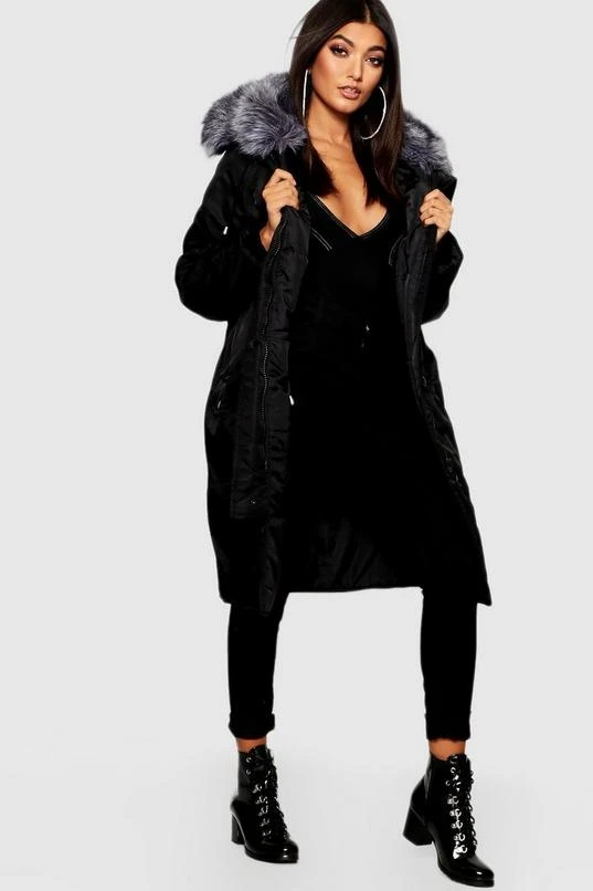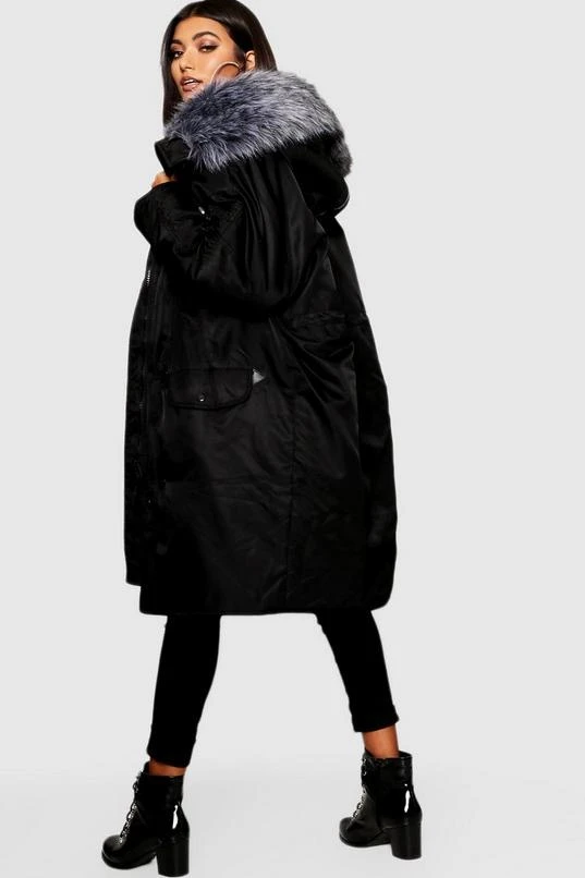BOOHOO Oversized Faux Fur Fly Hood Luxe Parka Coat