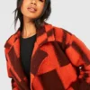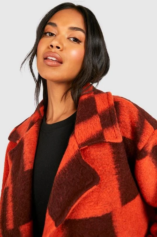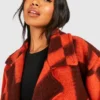 BOOHOO Oversized Flannel Print Wool Look Coat