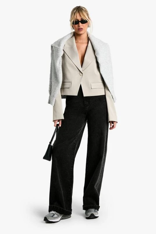 BOOHOO Oversized Lapel Asymmetric Cropped Blazer