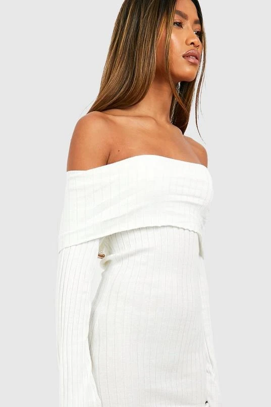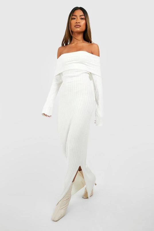 BOOHOO Oversized Off The Shoulder Neckline Knitted Maxi Dress