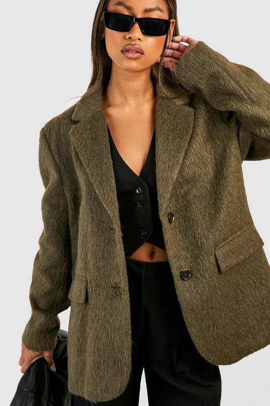 BOOHOO Oversized Textured Wool Blazer