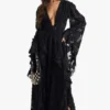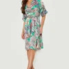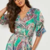 BOOHOO Paisley Belted Puff Sleeve Midi Dress