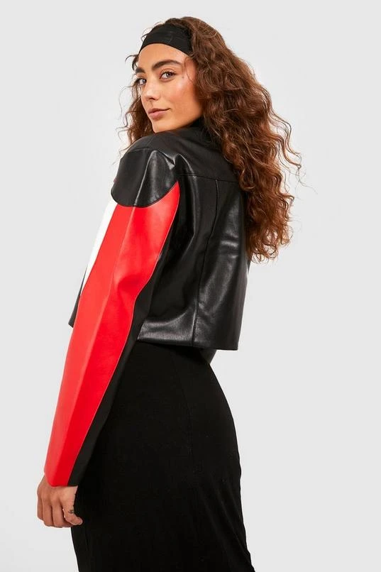 This moto jacket is short, close-fitting, and sporting that leather look; this biker jacket is exactly what you need to refresh your look. The chunky zips and large collar are a statement in themselves, and this women’s biker jacket is guaranteed to turn heads. Whether you like to keep it low-key in an all-black fit or prefer to wear bright and bold outfits, this motorcycle jacket is so versatile and can be easily added to any look. From the bar to brunch, work to the weekend, let this moto jacket work its magic.