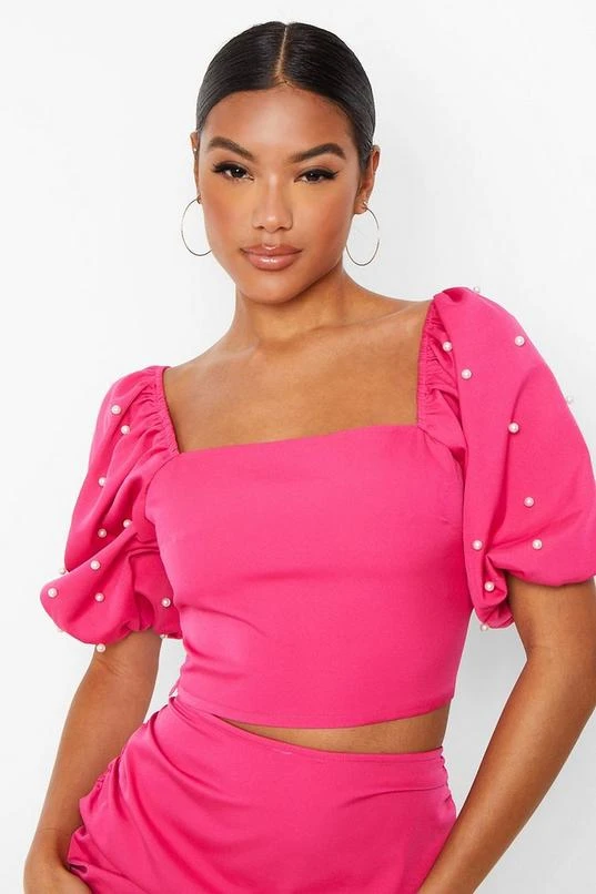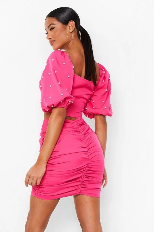 BOOHOO Pearl Sleeve Top And Ruched Skirt Two-Piece Set