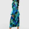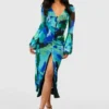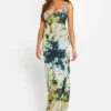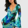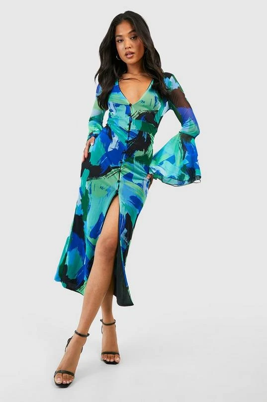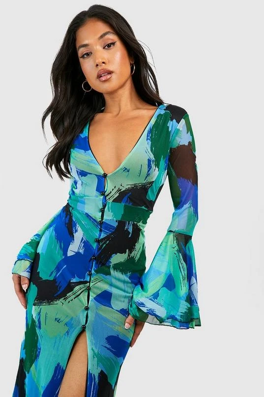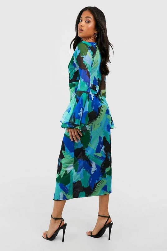 BOOHOO Petite Abstract Mesh Flare Sleeve Midi Dress