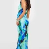 BOOHOO Petite Abstract Print Cowl Neck Maxi Dress