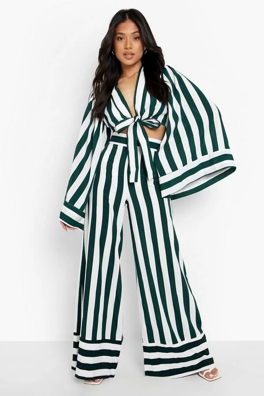 BOOHOO Petite Angel Sleeve Crop & Flare Two-Piece