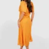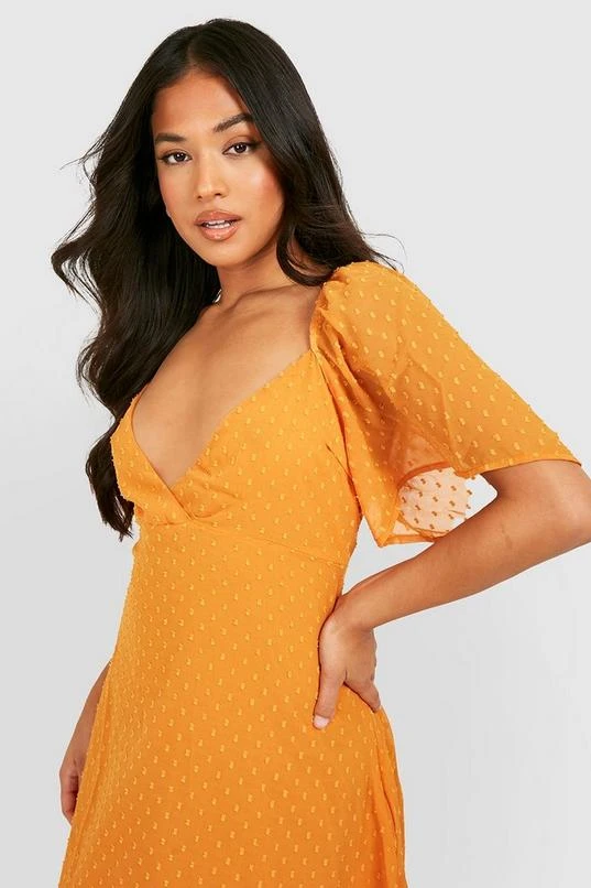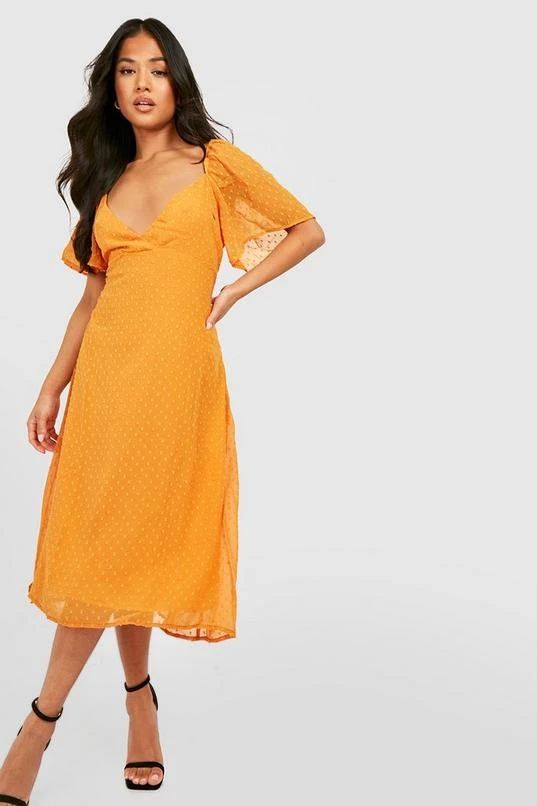 BOOHOO Petite Angel Sleeve Dobby Mesh Midi Dress