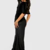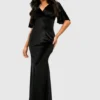 BOOHOO Petite Angel Sleeve Velvet Maxi Dress