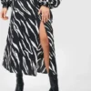 BOOHOO Petite Animal Print Blouson Sleeve Midi Dress