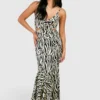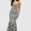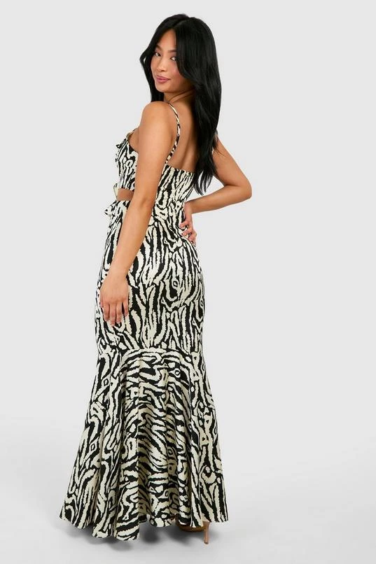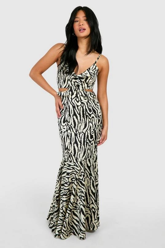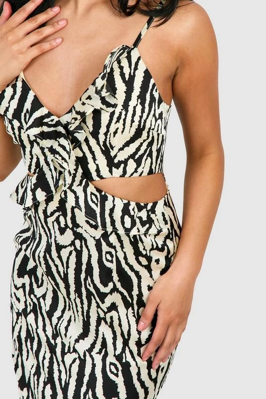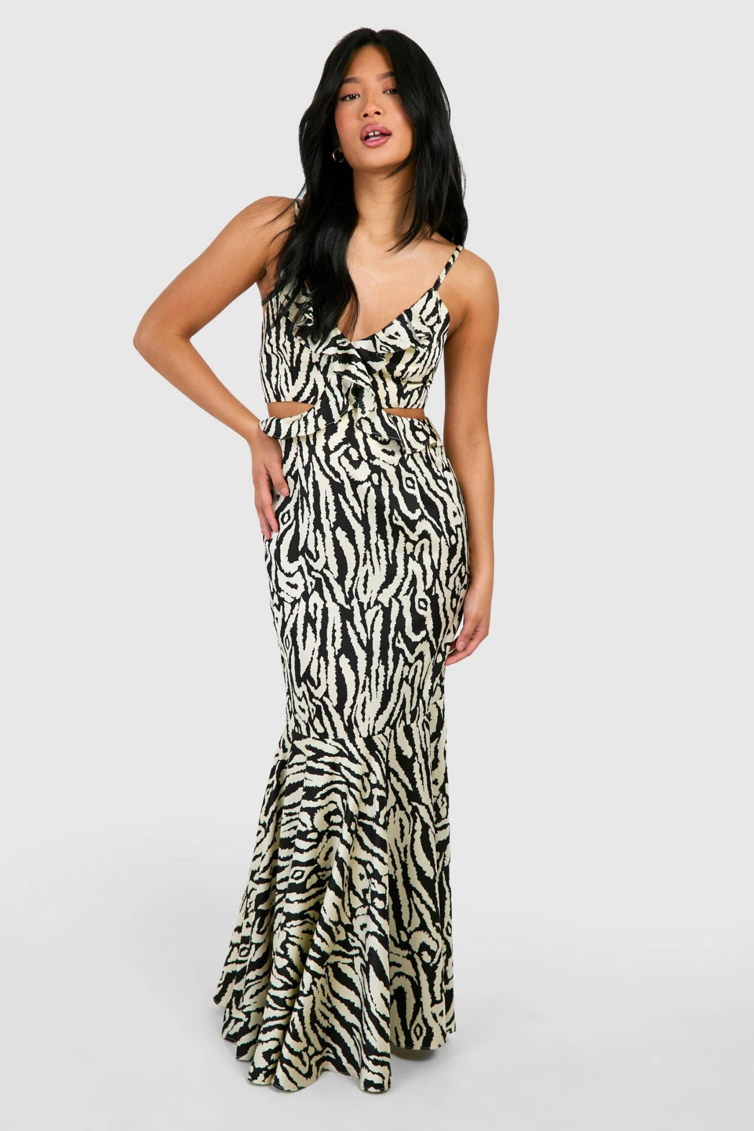 BOOHOO Petite Animal Print Ruffle Cut Out Maxi Dress