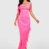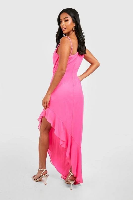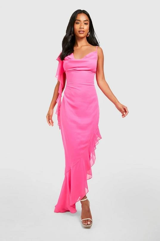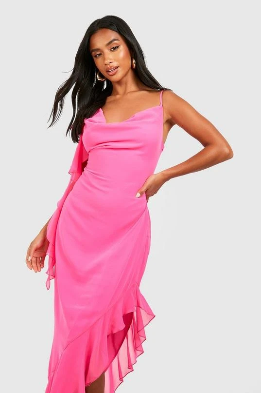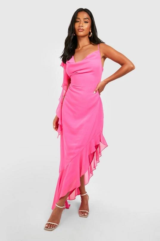 BOOHOO Petite Asymmetric Ruffle Midi Dress
