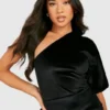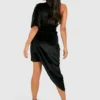 BOOHOO Petite Asymmetric Velvet Wrap Midi Dress