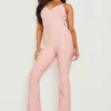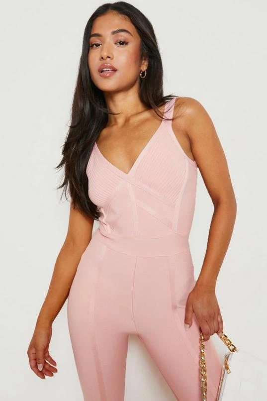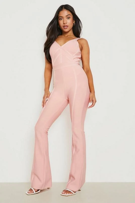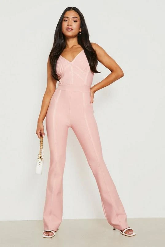 BOOHOO Petite Bandage Seam Detail Flare Leg Jumpsuit