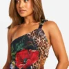 BOOHOO Petite Belt Detail Leopard Chiffon Maxi Dress