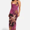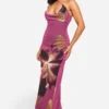 BOOHOO Petite Bold Floral Asymmetric Cowl Drape Maxi Dress