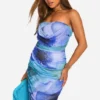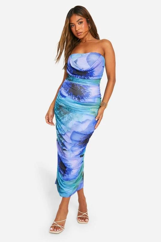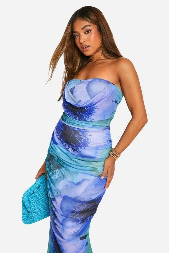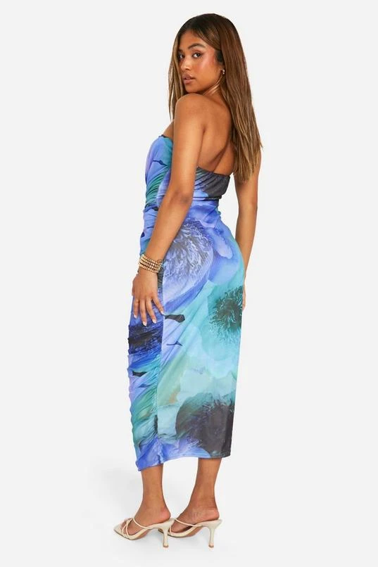 BOOHOO Petite Bold Floral Ruched Drape Front Midaxi Dress