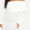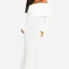 BOOHOO Petite Boucle Extreme Foldover Off The Shoulder Knitted Maxi Dress