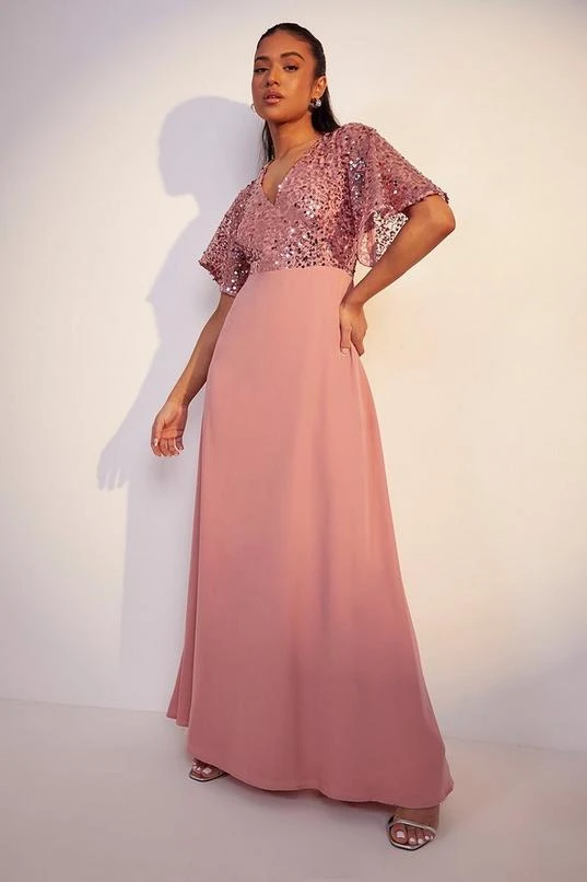 BOOHOO Petite Bridesmaid Occasion Sequin Maxi Dress