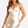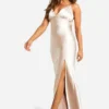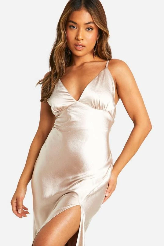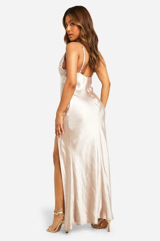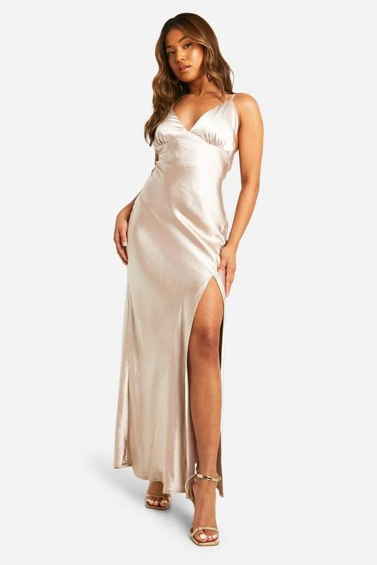 BOOHOO Petite Bridesmaid Satin Strappy Maxi Dress