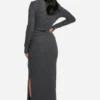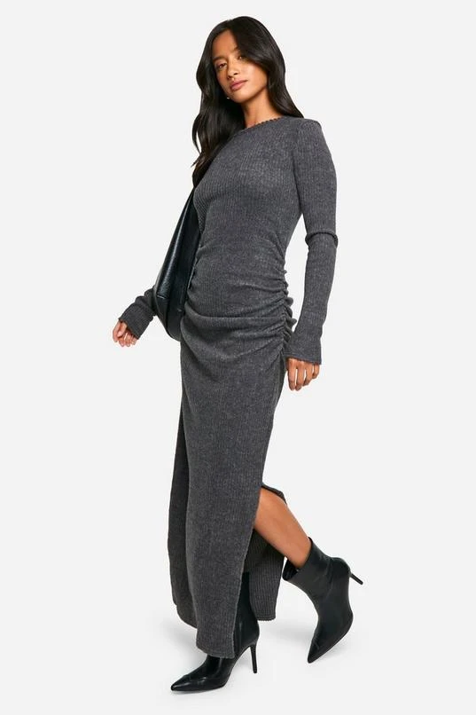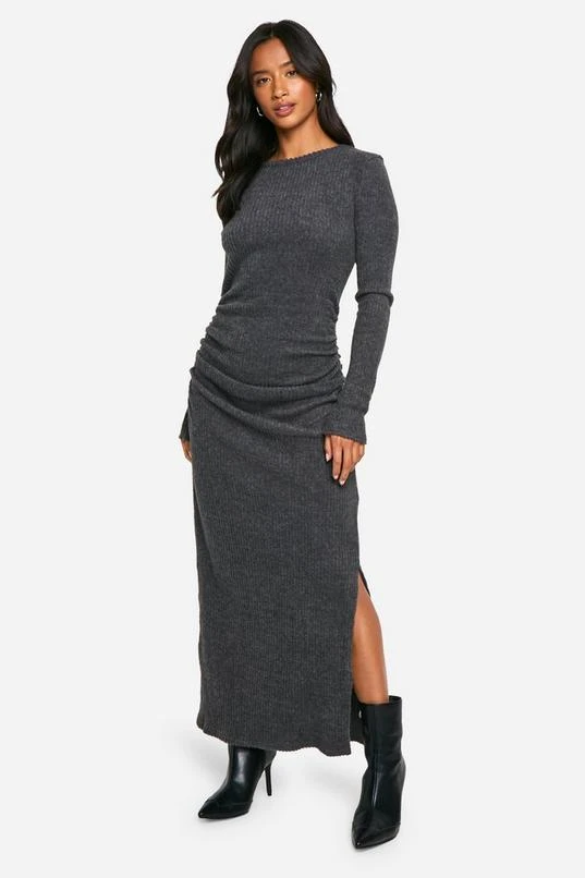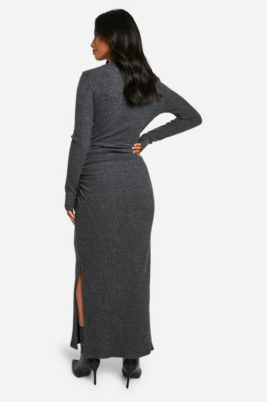 BOOHOO Petite Brushed Rib Long Sleeve Maxi Dress