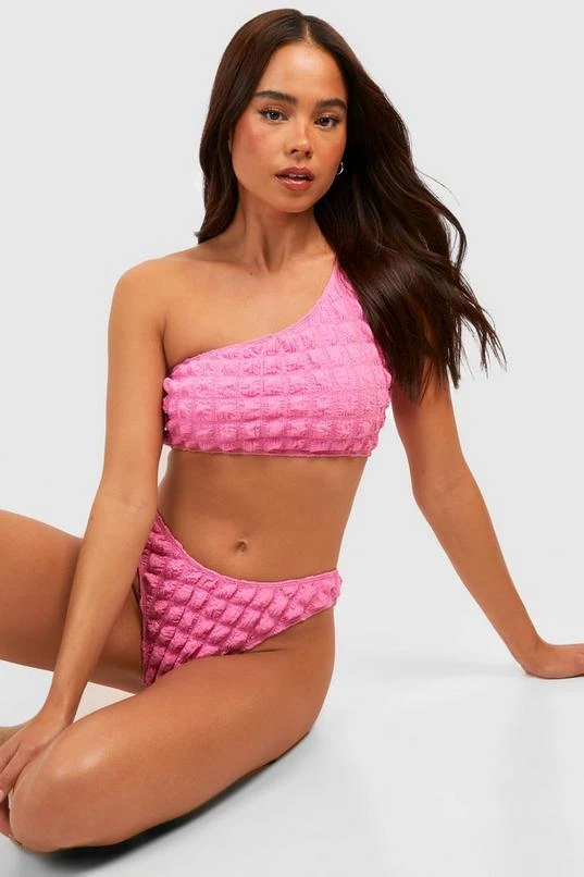 BOOHOO Petite Bubble Texture One Shoulder Bikini