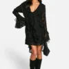 BOOHOO Petite Burnout Floral Ruffle Shift Dress