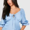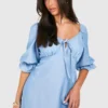 BOOHOO Petite Chambray Tie Front Mini Dress