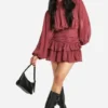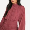 BOOHOO Petite Chiffon High Neck Ruched Skater Dress