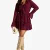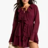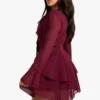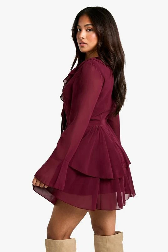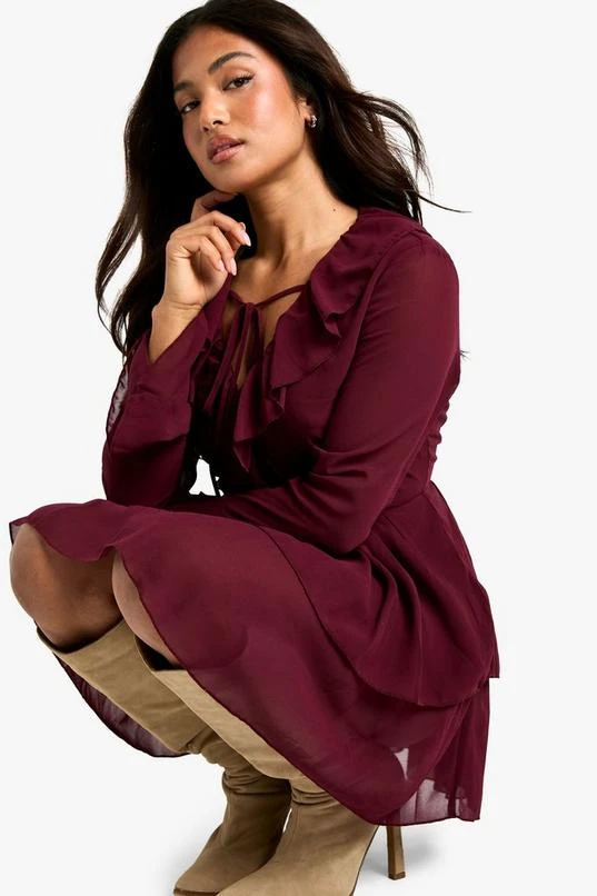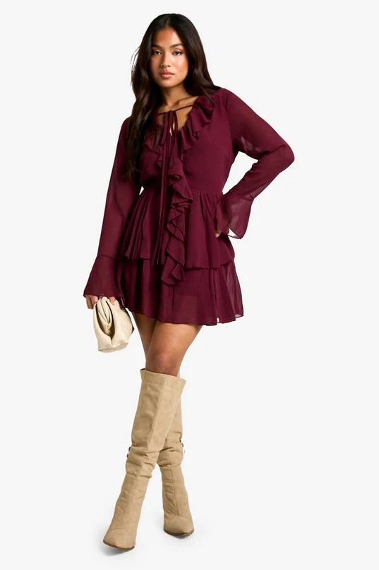 BOOHOO Petite Chiffon Ruffle Plunge Skater Dress
