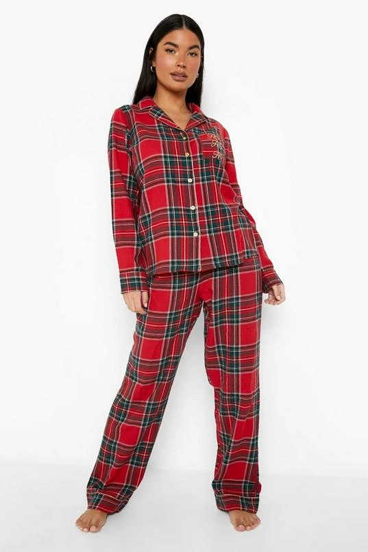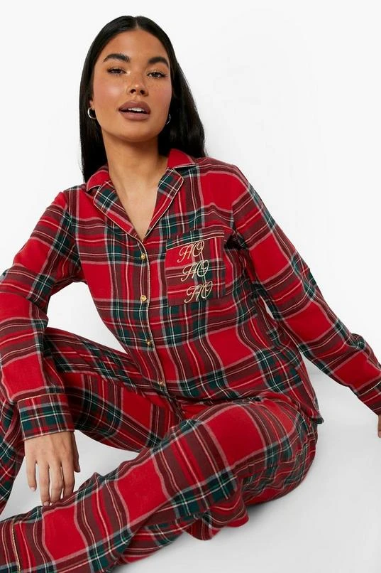 BOOHOO Petite Christmas ‘Ho Ho Ho’ Flannel Pj Pants Set