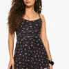 95% Polyester, 5% Elastane/Spandex. Lining: 100% Polyester. Wash with similar colours. Model wears UK size 10