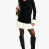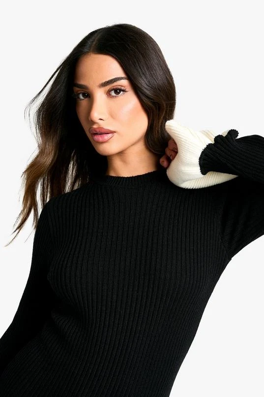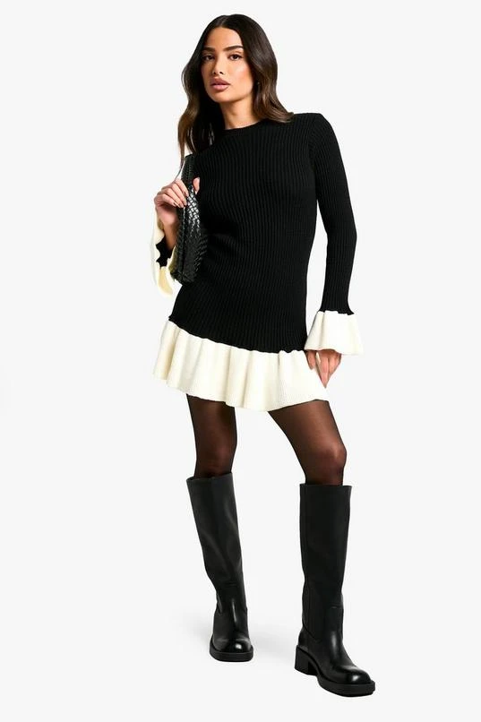 BOOHOO Petite Contrast Flare Sleeve Knitted Skater Dress