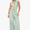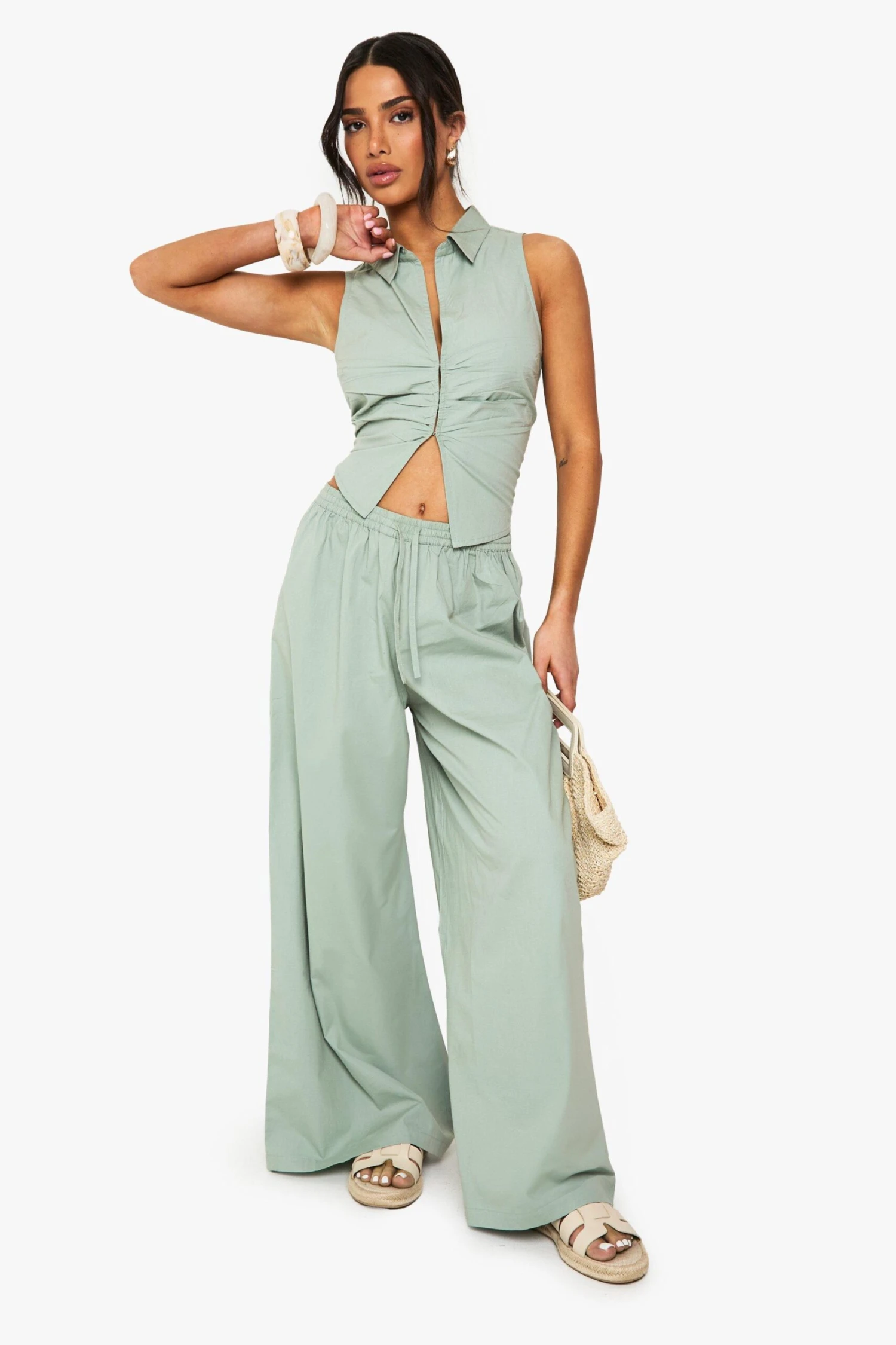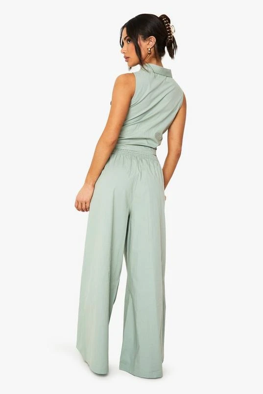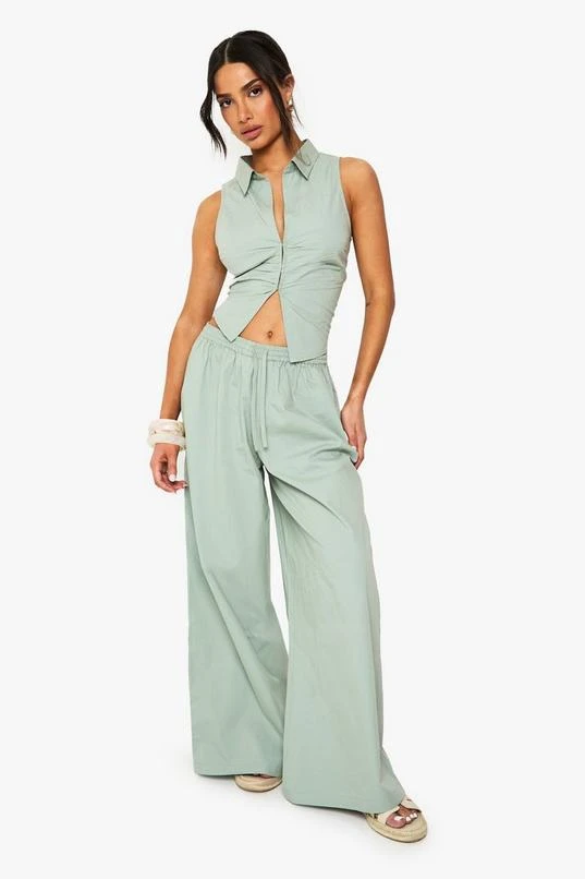 BOOHOO Petite Cotton Poplin Wide Leg Trouser