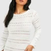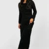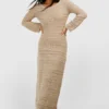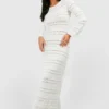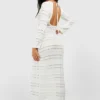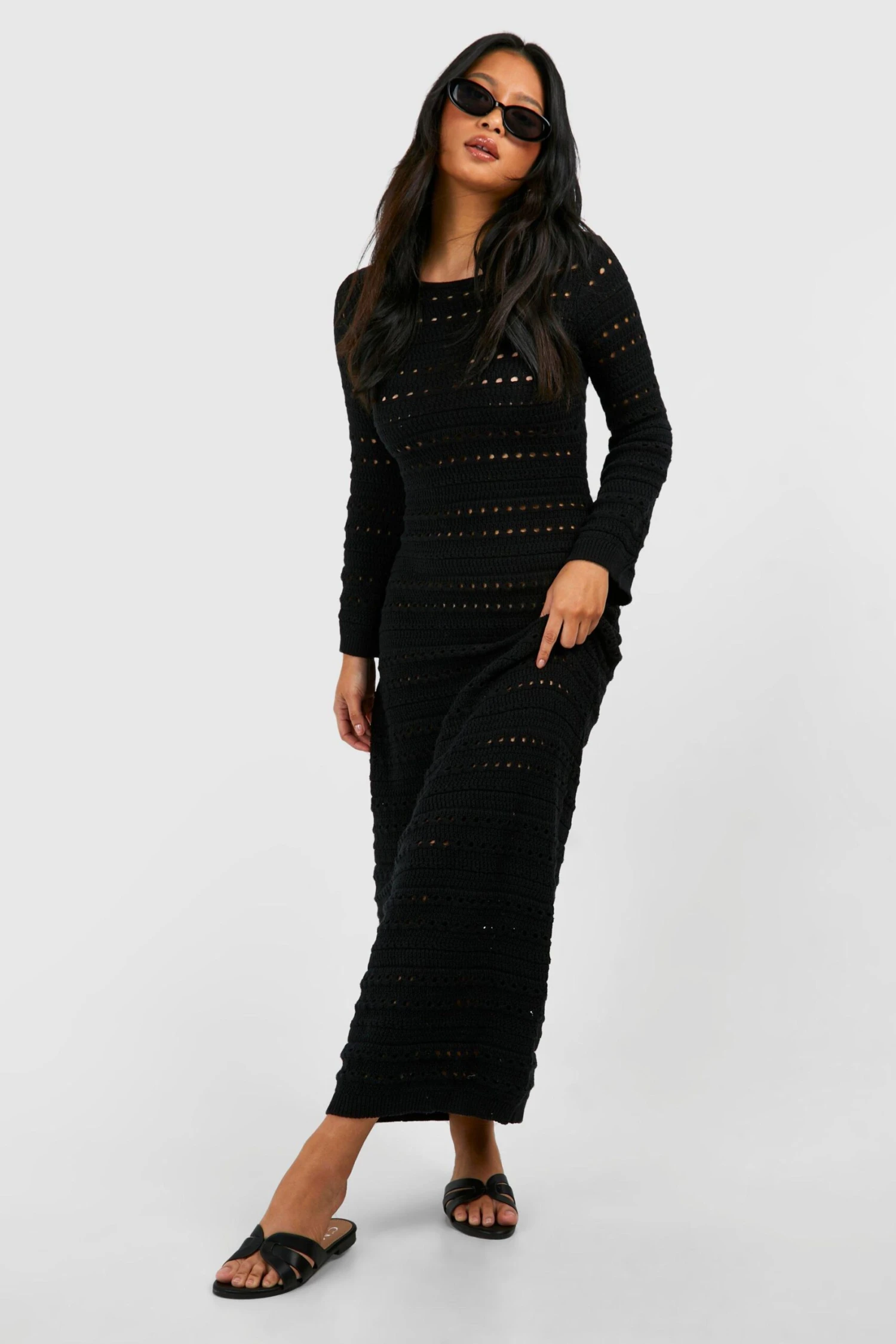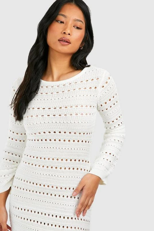 BOOHOO Petite Crochet Flare Sleeve Tie Back Knitted Maxi Dress