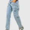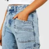 BOOHOO Petite Denim Light Wash Pocket Detail Cargo Jeans