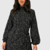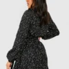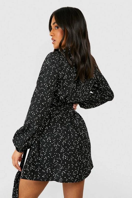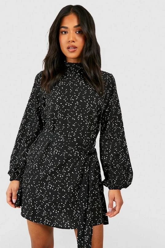 BOOHOO Petite Ditsy Spot Print Belted Skater Dress