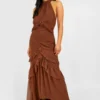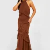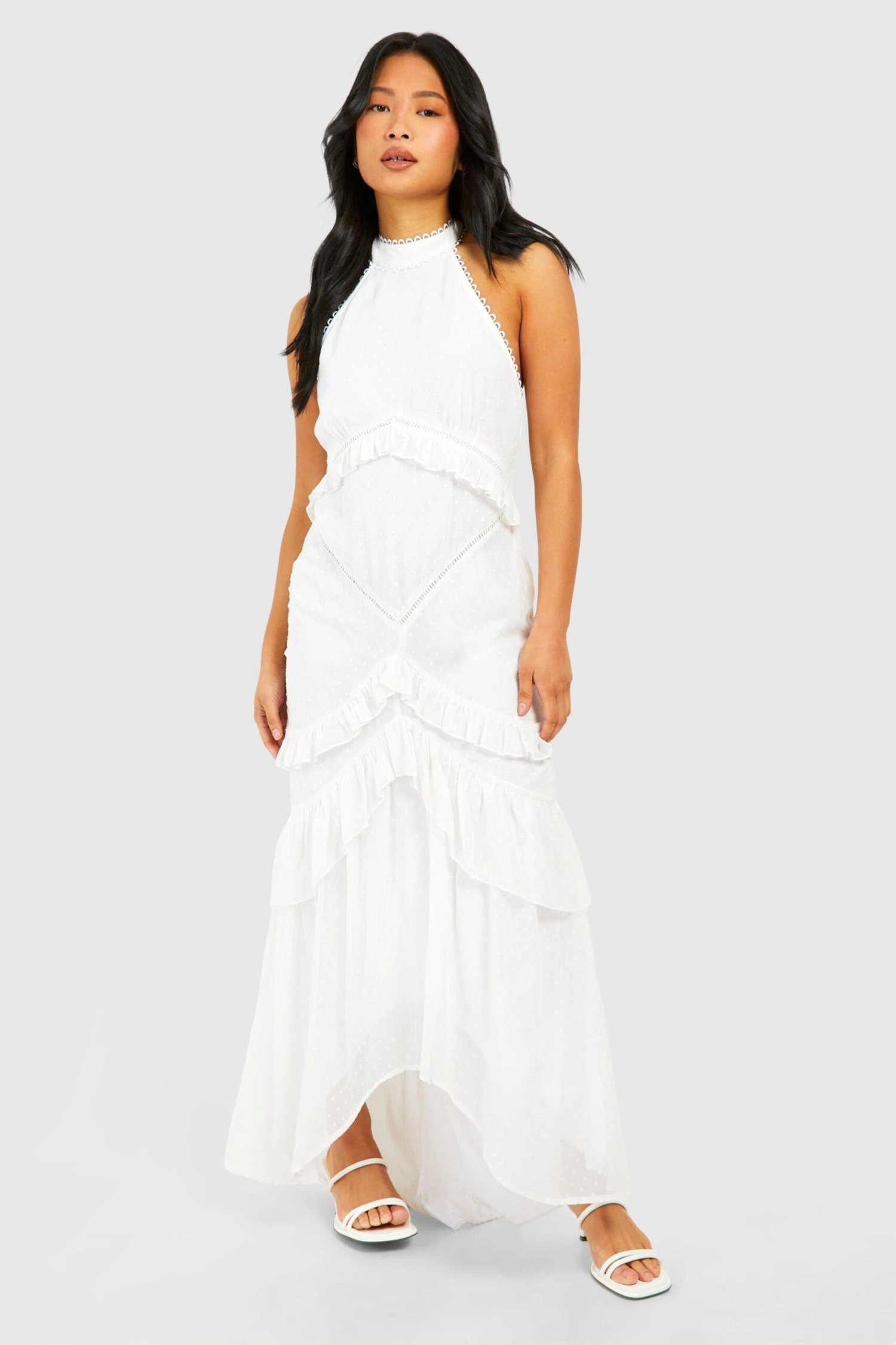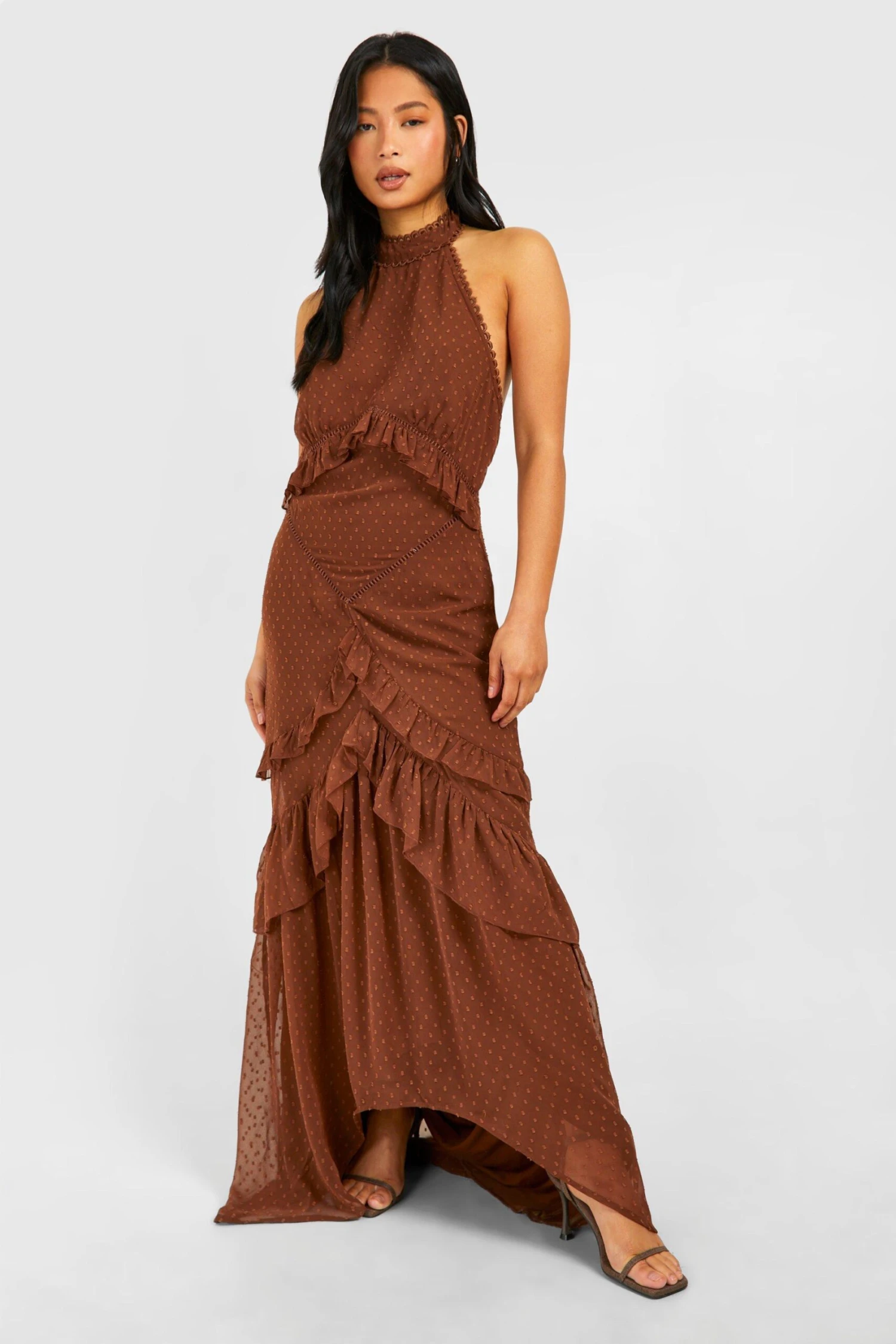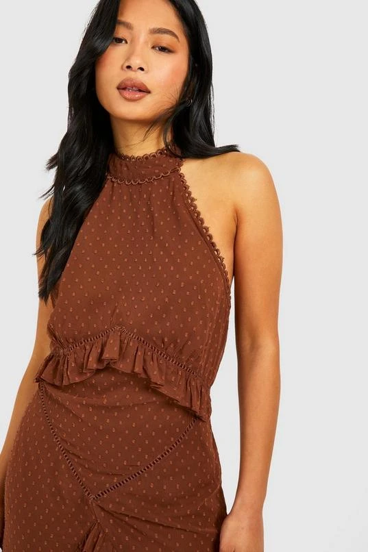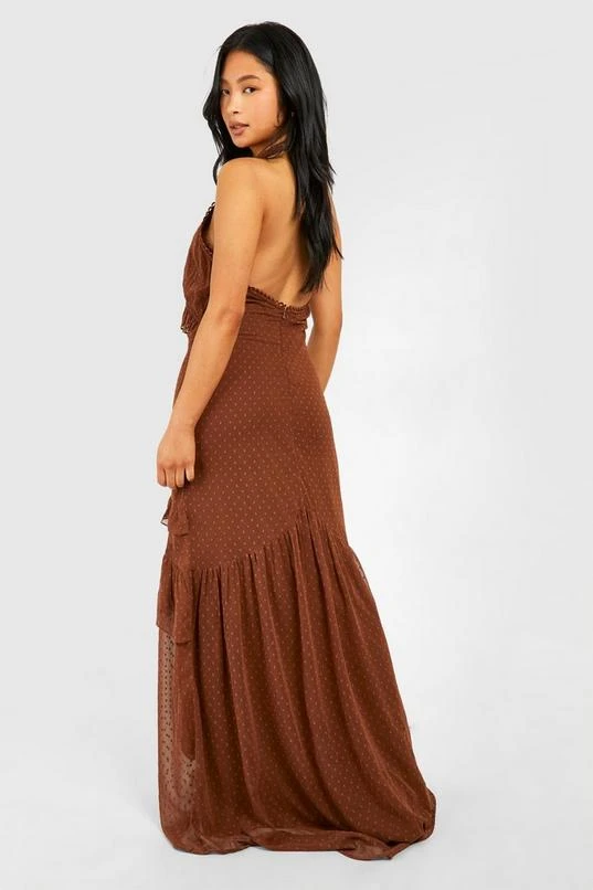 BOOHOO Petite Dobby Frill Maxi Dress