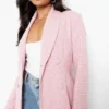 BOOHOO Petite Dogtooth Flannel Double Breasted Blazer
