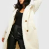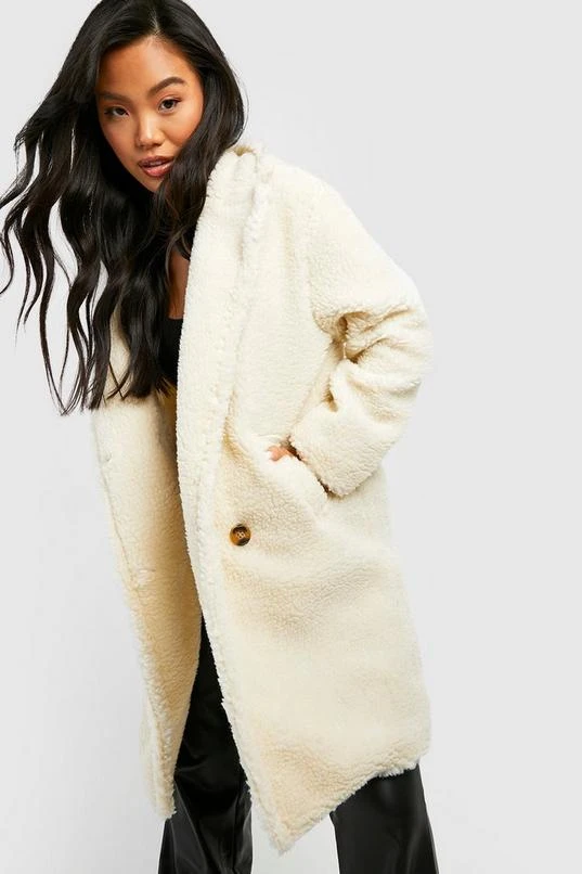 BOOHOO Petite Double Breasted Teddy Fur Coat
