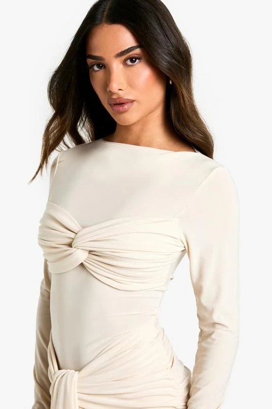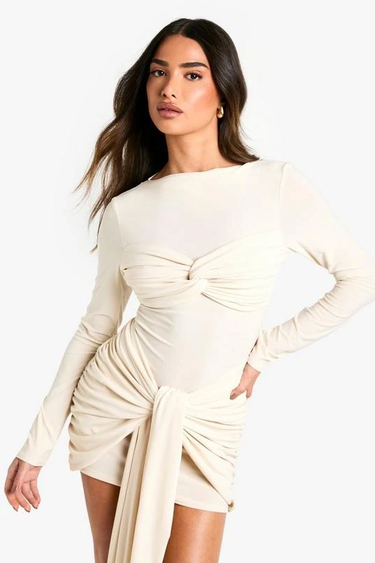 BOOHOO Petite Double Slinky Twist Front Mini Dress
