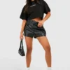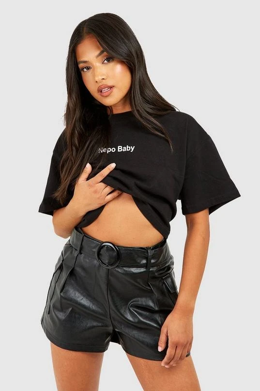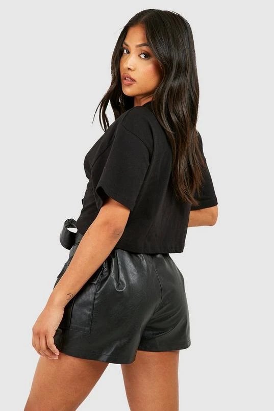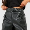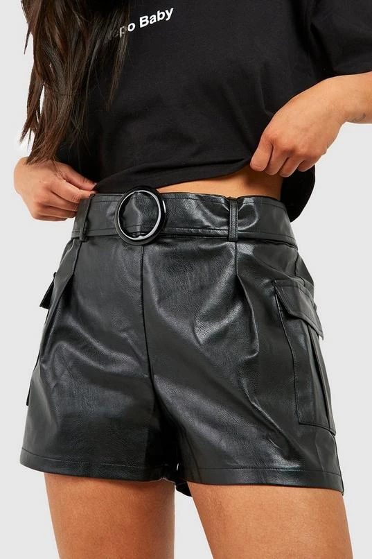 BOOHOO Petite Faux Leather Belted Utility Pocket Shorts